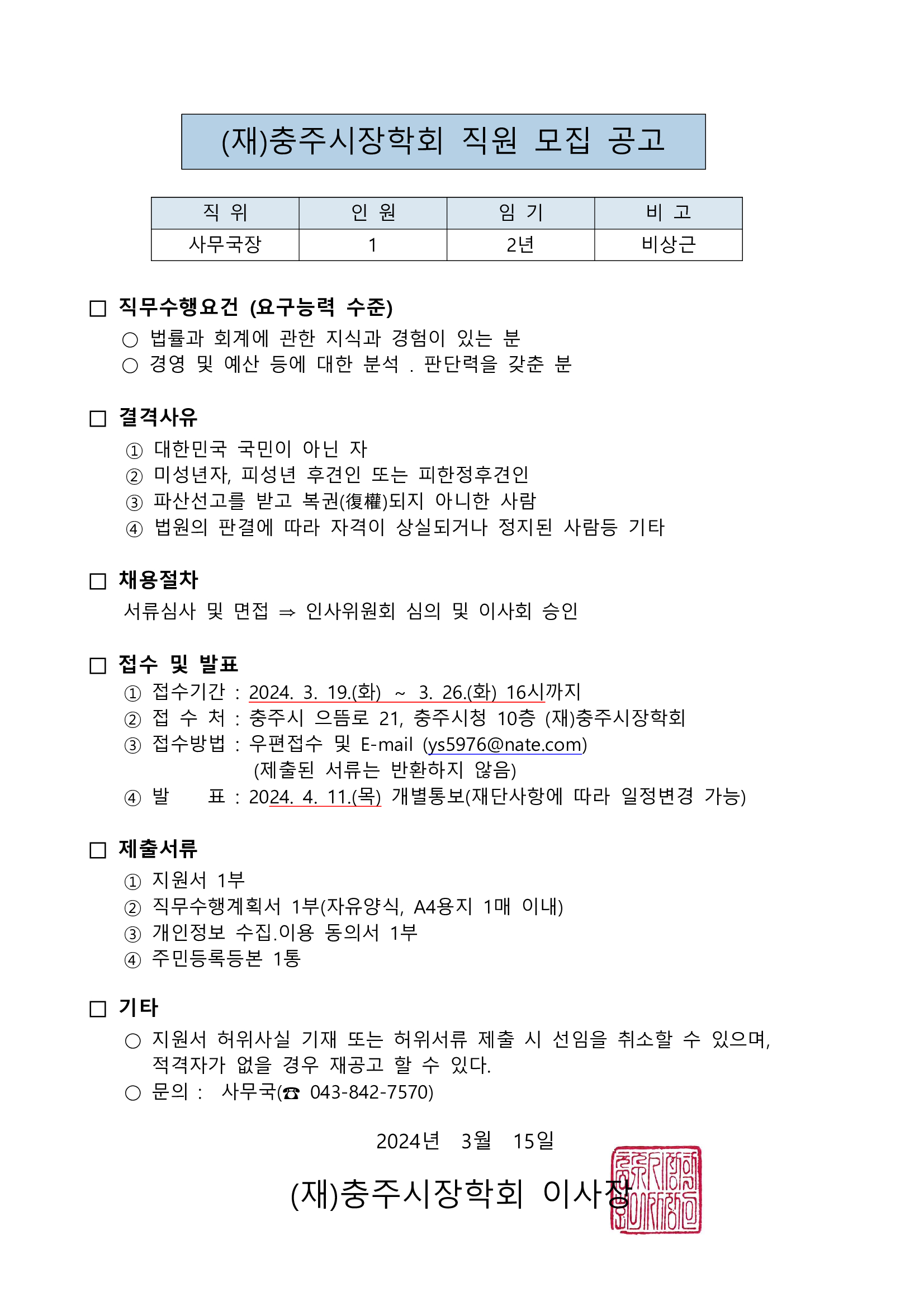 2024 (Àç)ÃæÁÖ½ÃÀåÇÐȸ Á÷¿ø ¸ðÁý °ø°í